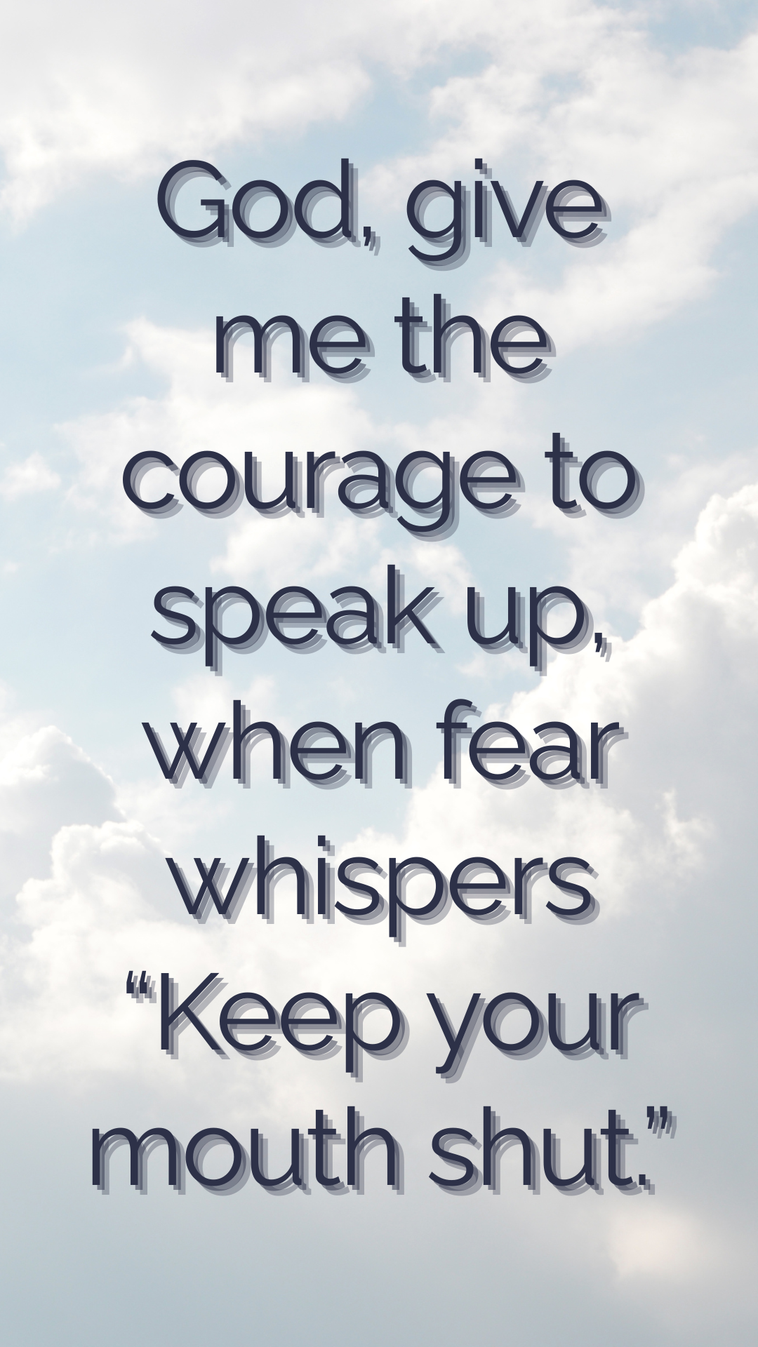 We're so glad you came to grab this free phone wallpaper with a simple but powerful prayer: "God, give me the courage to speak up when fear whispers, ‘Keep your mouth shut.’”